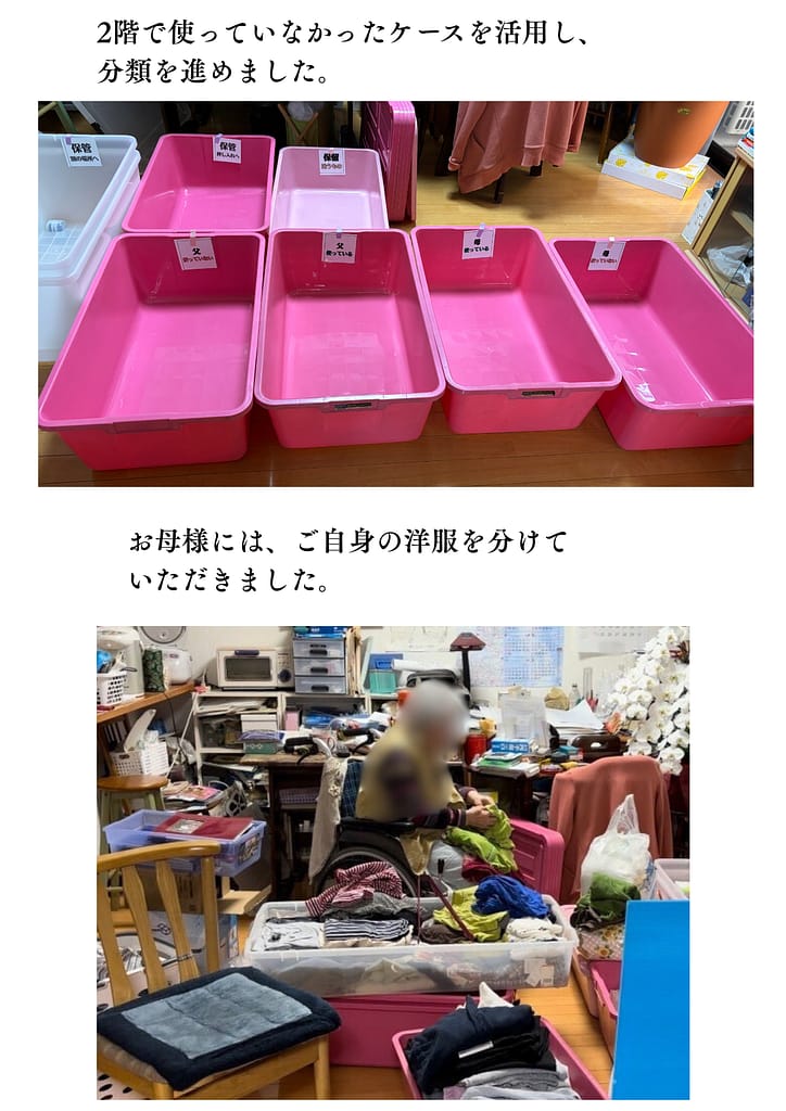 - ご両親の衣類が分かりやすくなり、介護動線が改善