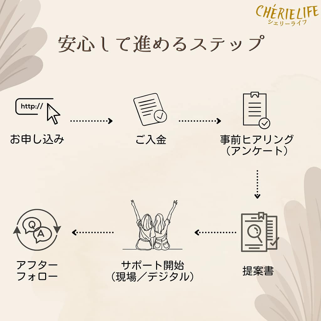 その後は、ご相談からサポート開始までの流れに沿って、